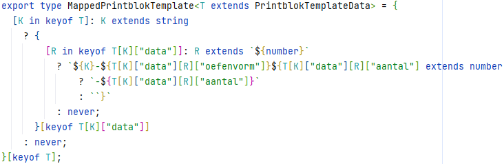 The screenshot above shows the result of the type, this may look complex and overcomplicated but it is very useful to have autocompletion and avoid any typos. The hardest part was to get typescript not making a type with all possible combinations of the data.